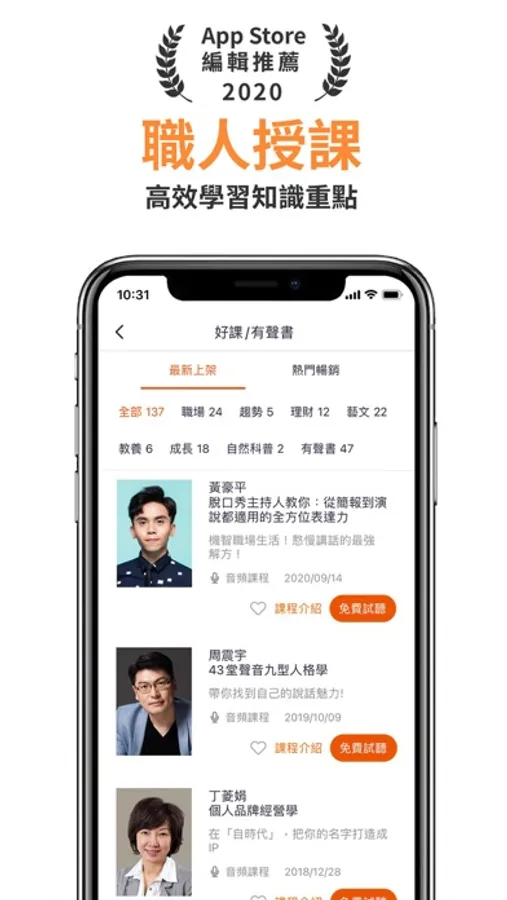 己有超過100位名師開課,超過25萬名網友用過。讓你善用通勤、等候、做家事的零碎時間,系統化的用耳朵學習。
