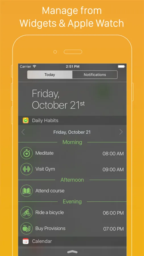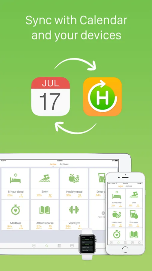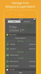 Daily Habits helps you organize, maintain and track good habits while driving out the ones that are negative and even harmful. Create groups of users with similar interests, invite your family and friends, share your progress and chat within the app. Explore the statistics of your progress and head your app through Today Widget or Apple Watch. Upcoming actions can be synced with the iOS Calendar app, making it easy to organize your day.
