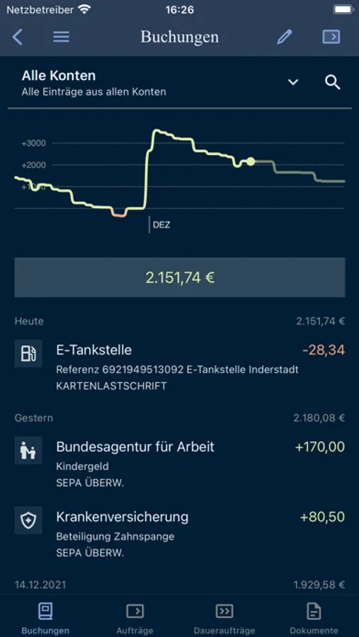 • Salden, Umsätze, Überweisungen, Terminaufträge, Daueraufträge,