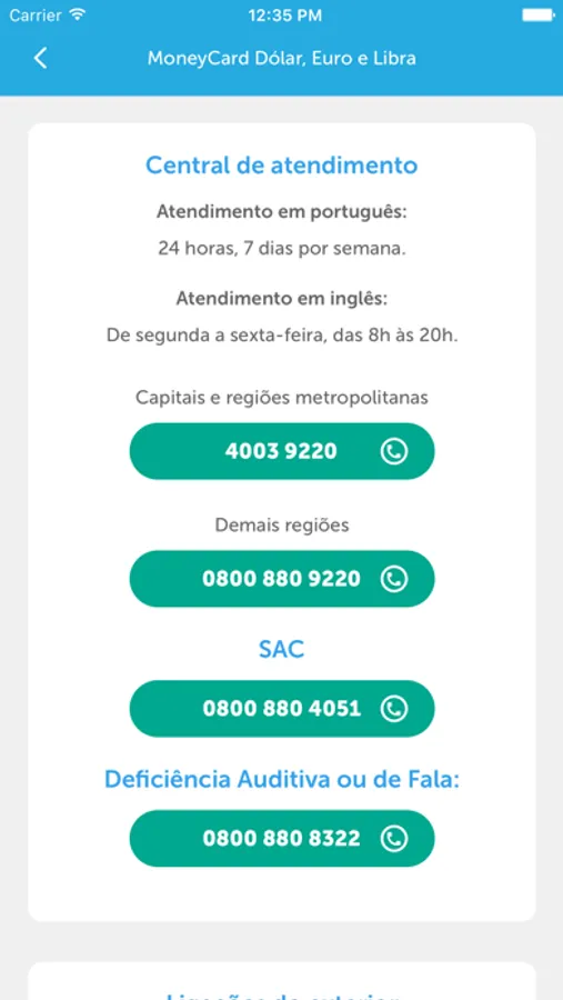 - Disponibilizar os telefones de contato da Central de Atendimento ao cliente, com atendimento personalizado sobre o Moneycard.