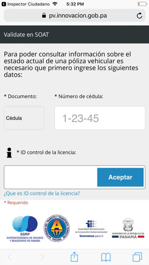 - Inicia sesión con tu cuenta de Inspector Ciudadano o de Panamá Apps
