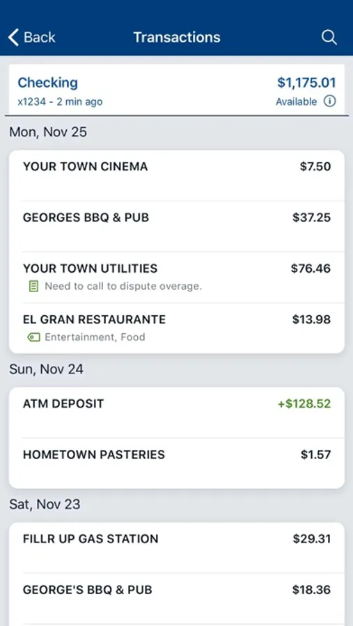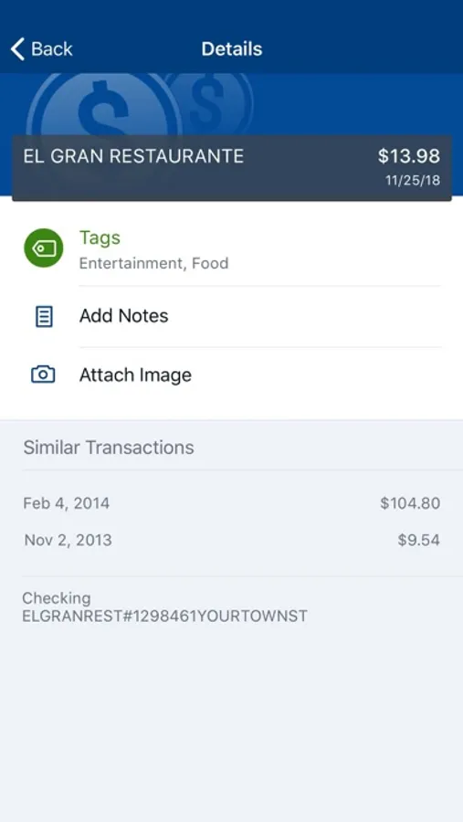Add Tags, Notes, Images & Geo-Information: By enhancing transactions with custom tags, notes or photos of a receipt or check, you have the ability to stay organized and find exactly what you’re looking for when searching through your finances.