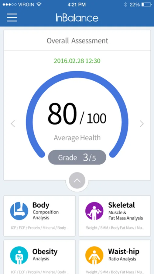 1. Inbalance(인발란스) measured data from mobile App. Your measured data by Inbalance can be checked on application. Easy recognition of trend and personal history by graph.