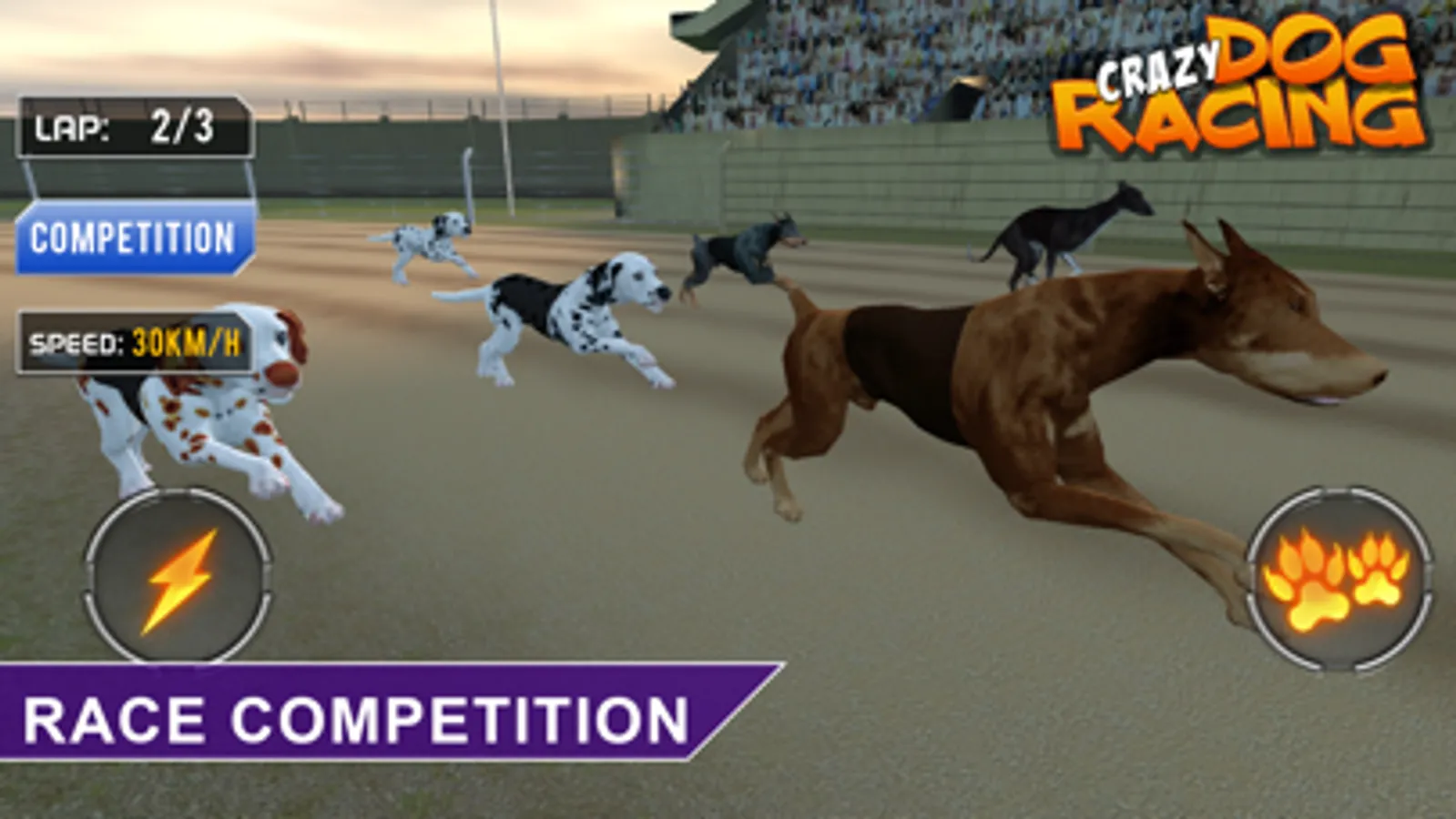 Crazy Dog Racing is a lapping game where you will have to tap to make it run faster and at the end of every race you will win points which will help you to unlock new fastest dog to win this amazing dog racing challenge. This is not just a simple dog race game, its simulation of profesional dog race, where a bunny is running infront of the dogs, and dogs have to chase the bunny with full speed and might. The dog that chases it first, wins the race.