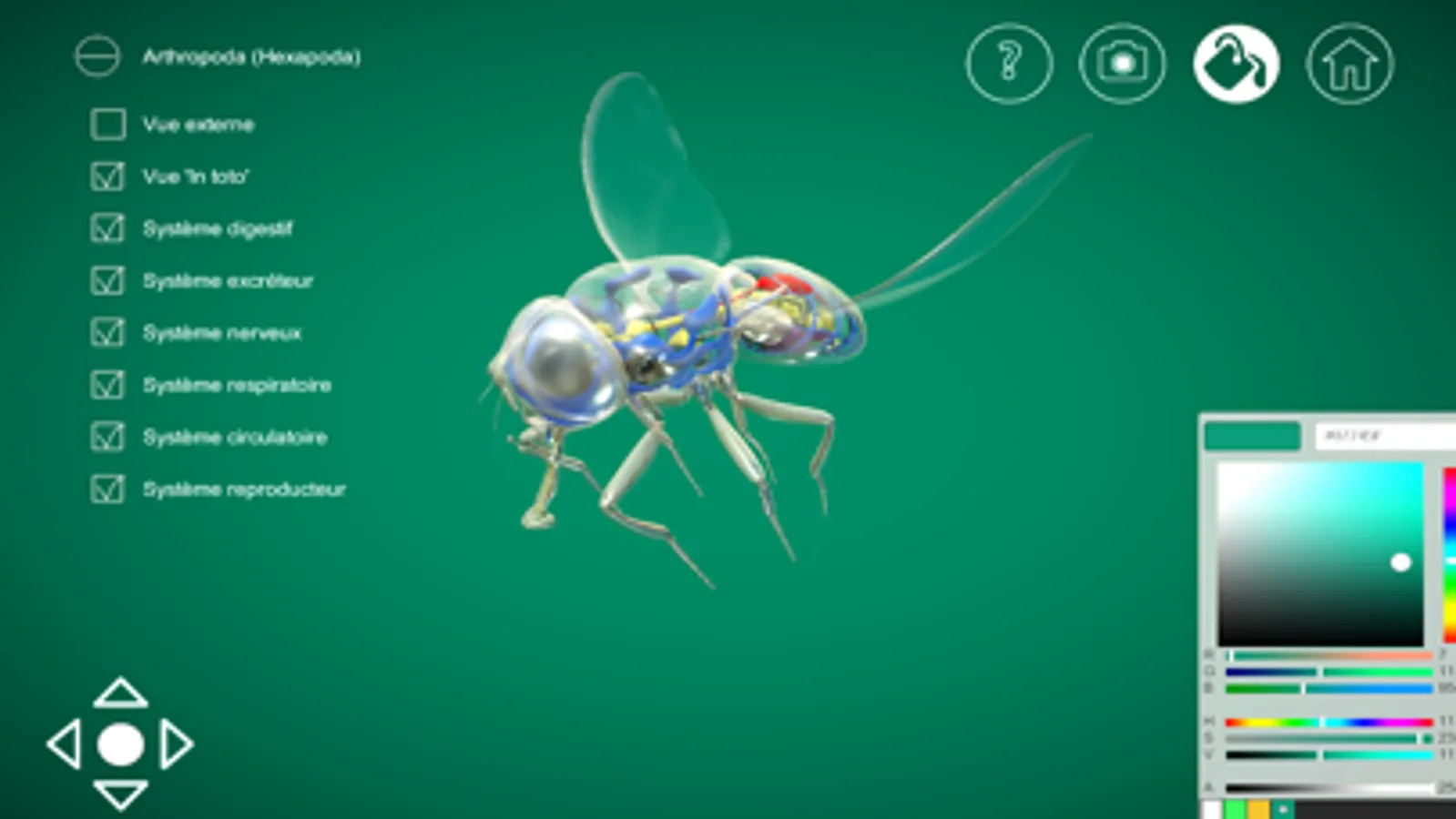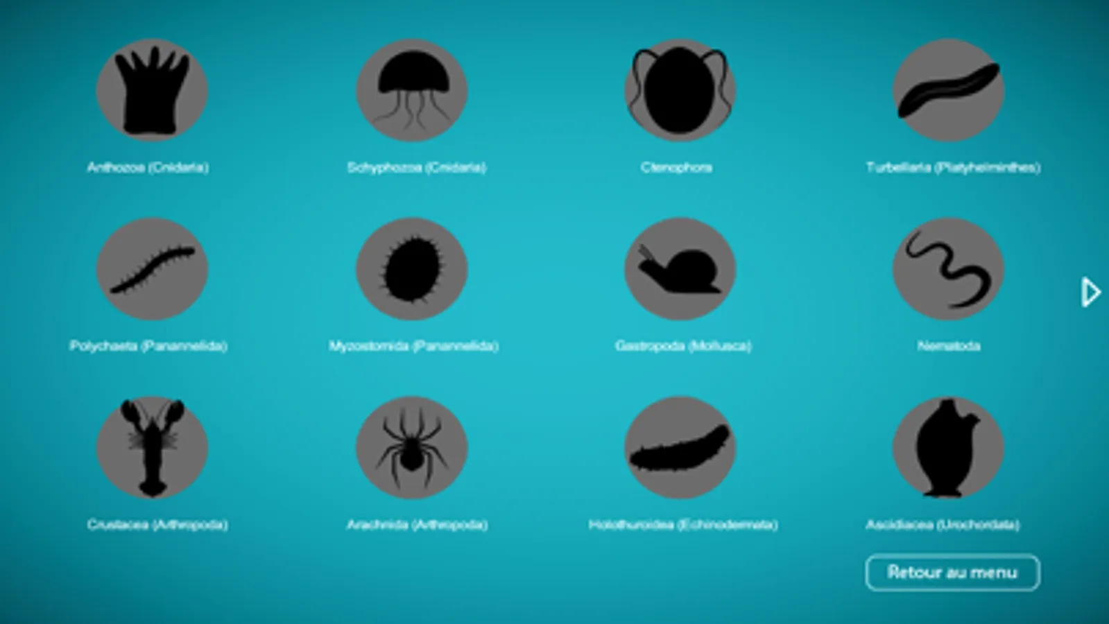 The organisms presented in MetaMorphos are avatars, that is to say 3D reconstructions of typical organisms regrouping the major characteristics of high-ranking taxa in the Linnean hierarchy, usually classes. MetaMorphos allows to analyze the external morphology of the avatars as well as its systemic organization. The visualized organic systems are the digestive, excretory, nervous, reproductive, circulatory, and respiratory systems with some other unique systems observed in certain taxa as well (e.g., the ambulacral system of echinoderms). An organic system can be visualized alone or with other systems, either in toto or without representation of the translucent body of the animal. A cursor is used to identify the systemic parts. The avatar can be oriented in all the dimensions of the space and a function "zoom" makes it possible to magnify the part of the body in analysis.