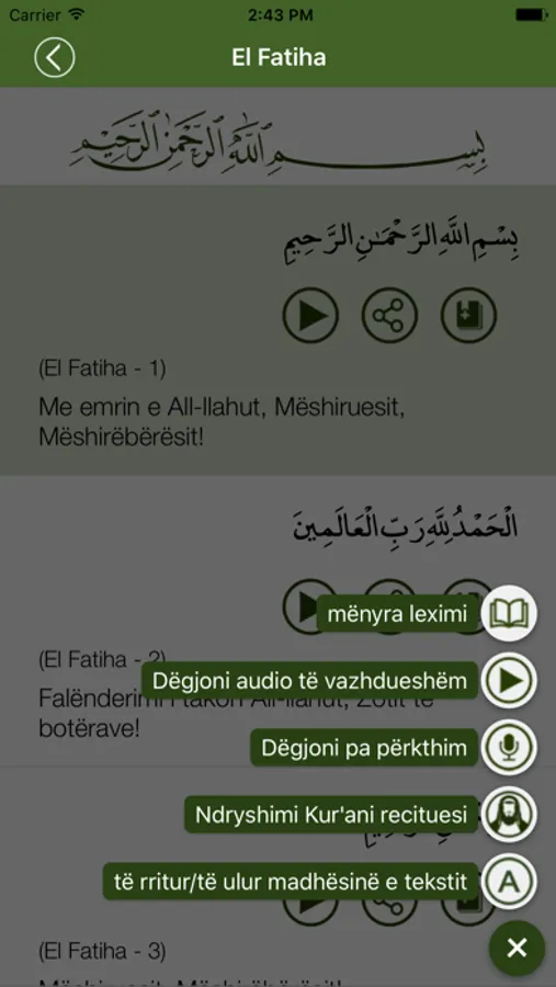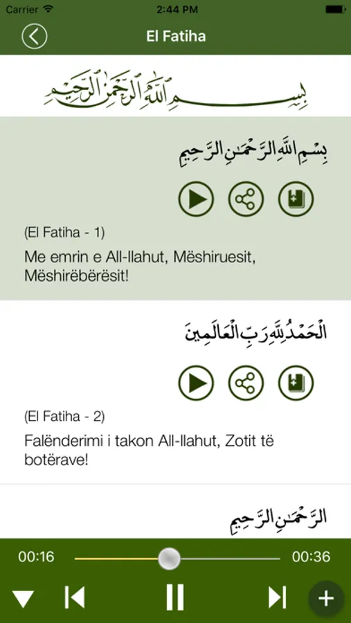 With this Islamic book app, you are getting Hafizi Kur'ani with real page-curl experience. This is not just a textual app, it is an audio Kur'ani app. You can listen telwat of Kur'ani verses continuously (internet connection required). You can search words or topic in Shqip on this iOS Kur'ani app. Bookmark the ajet / verse you like / quote. Share the ajet / verse you want.