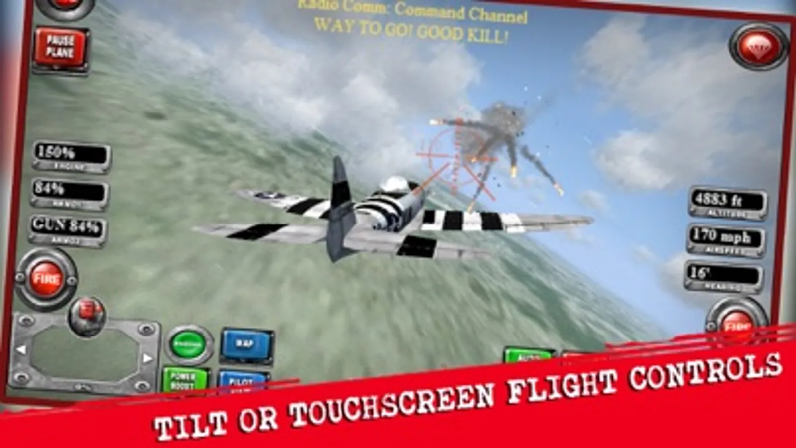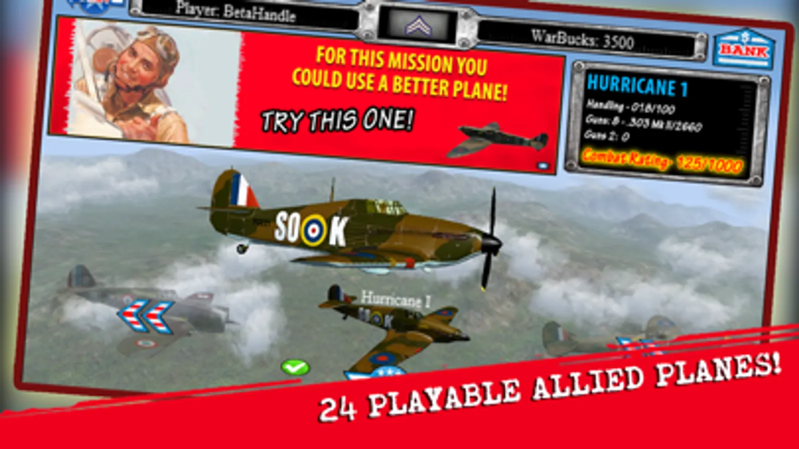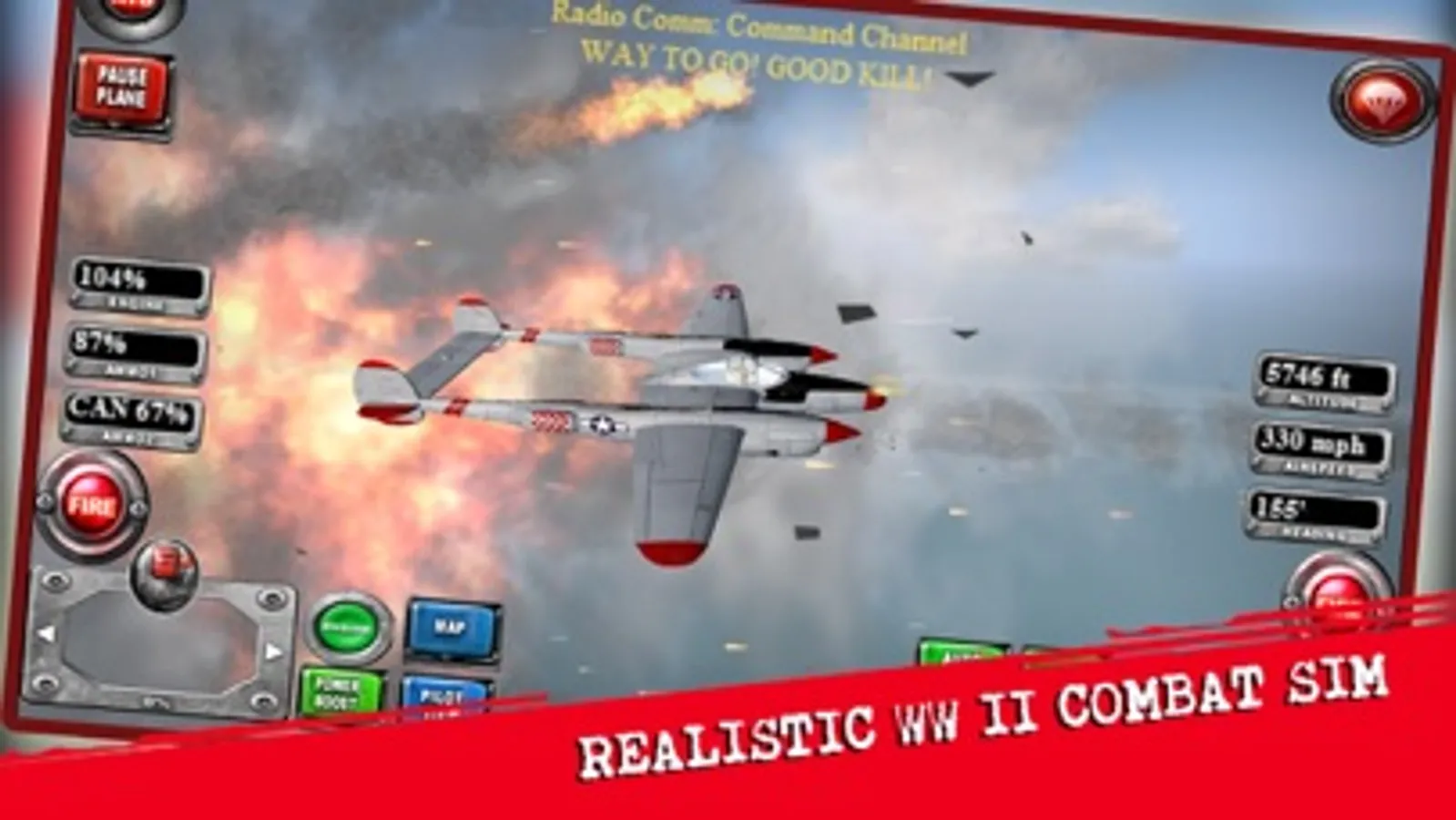 Fighter Aircraft Combat Simulator in historically accurate World War II campaigns with P-51Ds, Spitfires, P-38 Lightning fighters! Fly and Fight in Europe, from the 1940 Phony War to the 1945 V-E Day. Fly 24 fully modeled Allied fighter aircraft including the British Hurricane and the famous P-47D Thunderbolt in realistic 3D terrains. Real flying skills are need to fight, survive, and help to win World War II in the air!