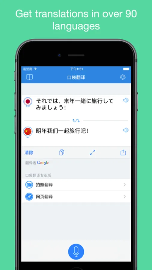 • Conversation Mode: Two-way instant speech translation in 32 languages