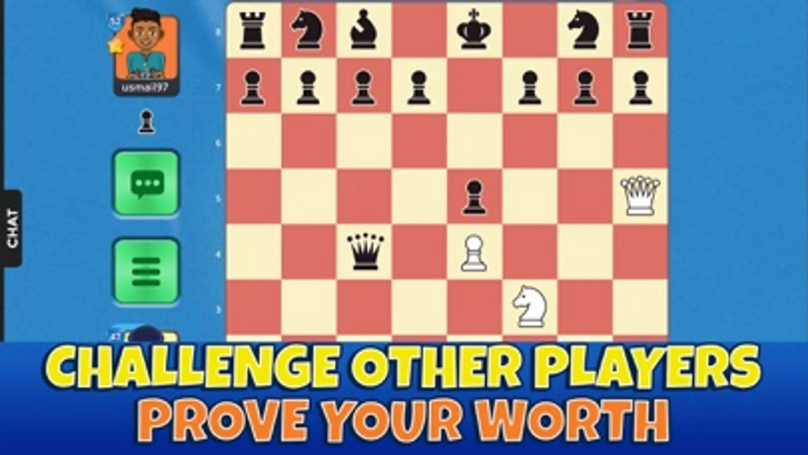 It doesn’t matter if you’re a beginner or a professional player, you can play either against the machine (AI) in the training mode or with other players of your level. Show your worth in the chess game!