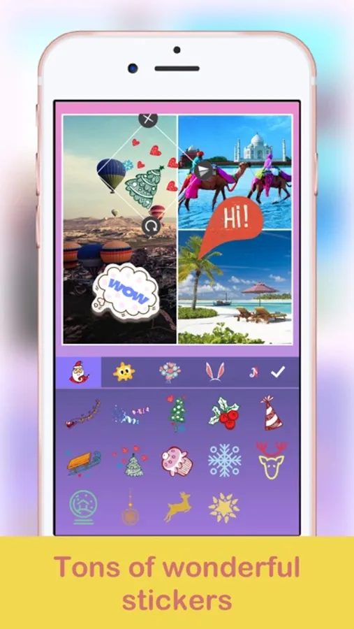 Easily understood and simple to use! Combine from 2 to 9 favorite shots into a single pic, transform, change, adjust and reshape any way you like! Choose from TONS of trendy template designs and photo collage styles to TELL YOUR STORY with one creatively framed picture! Decorate with beautiful effects, stickers, frames, colorful patterns, and designs in the most quickest and artful ways!