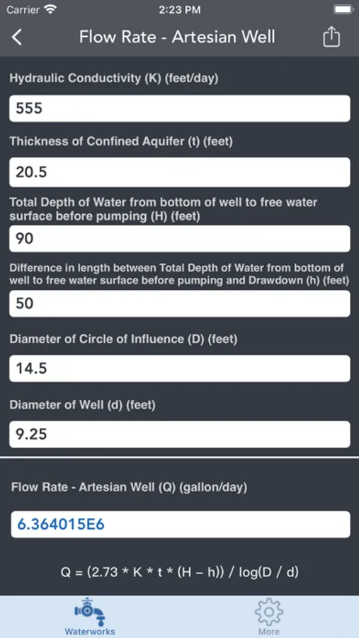 • Flow Rate - Gravity Well (Dupuit Formula)