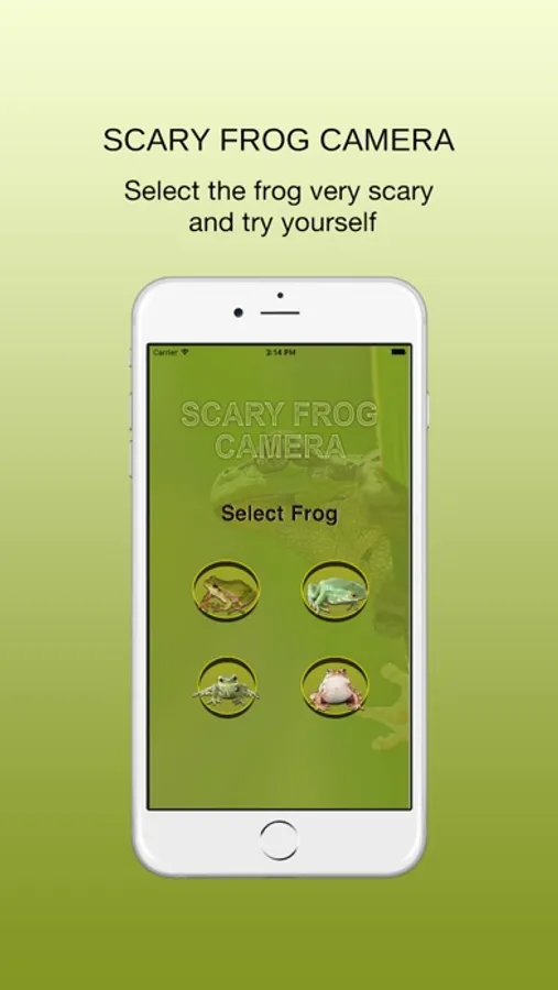 Your friends are afraid of frog? Then, to make fun of them using this app. Tell them to turn on the camera phone, and at the specified time on the screen crawl big scary frog. The game has a large selection of four different frogs. Be careful - people might accidentally break your phone from shock! Instructions: Select the desired frog and give telephone man. This is the perfect joke at people who are nasty insects.