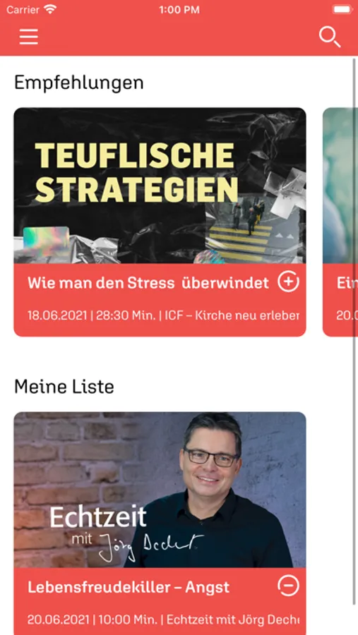 Folgende Funktionen bietet Ihnen die App der ERF Mediathek