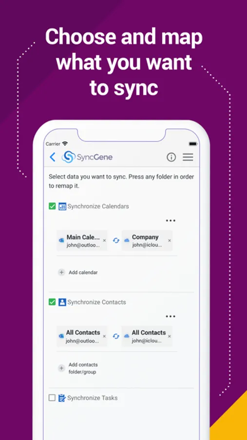 Time saver: easy automation tool for busy people. SyncGene will sync your web apps, email accounts and devices automatically. No need to enter the same information on multiple devices or services. Synchronization is performed without you ever noticing, just set up SyncGene once and you can forget about it.