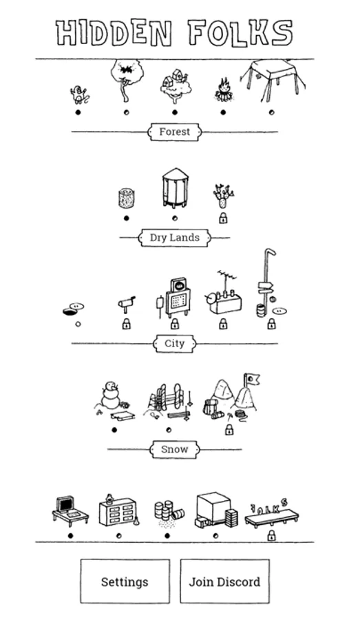 A strip of targets shows you what to look for. Tap a target for a hint, and find enough to unlock the next area.