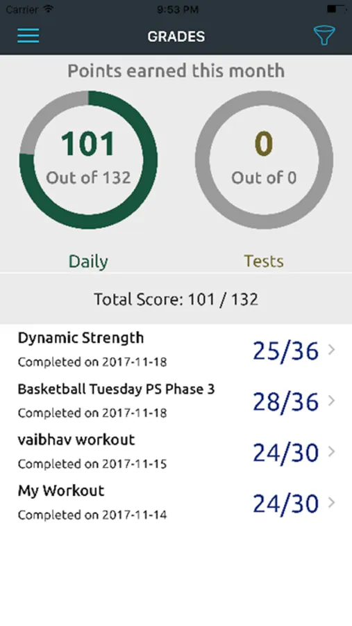 -For workouts that are graded, your score based on exercises completed and workout time