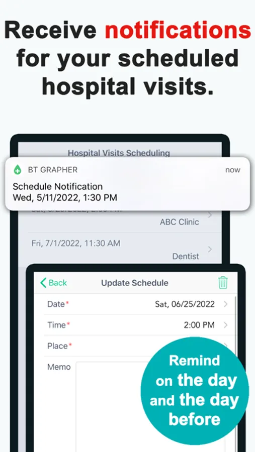 ・Receive notifications for your scheduled doctor visits.