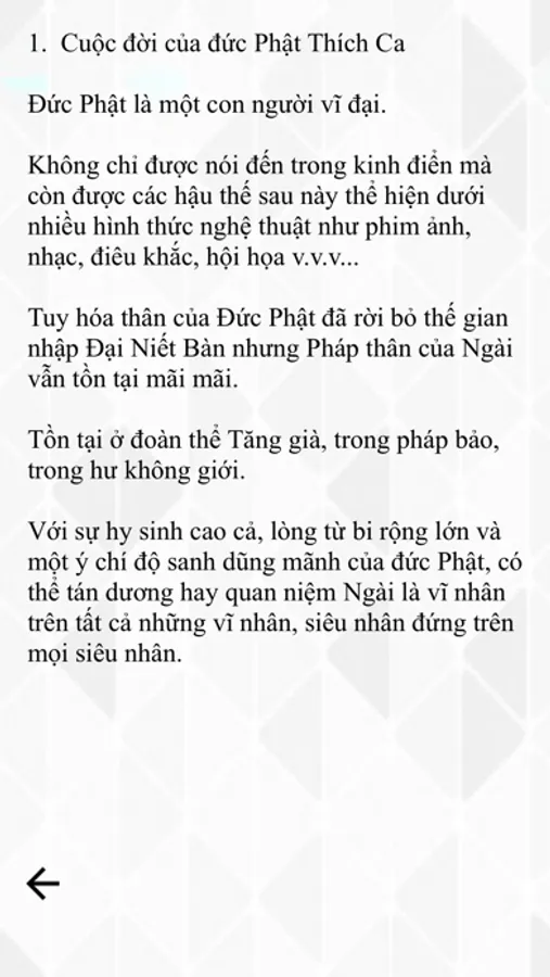Ứng dụng mang đến cho mọi người những mốc chính về cuộc đời Đức Phật nhằm giúp mọi người hiểu thêm về cuộc đời và giáo lý của một bậc vĩ nhân của nhân loại. Đem đến ánh sáng soi đường qua đêm đen cho các thế hệ hiện nay và mai sau.