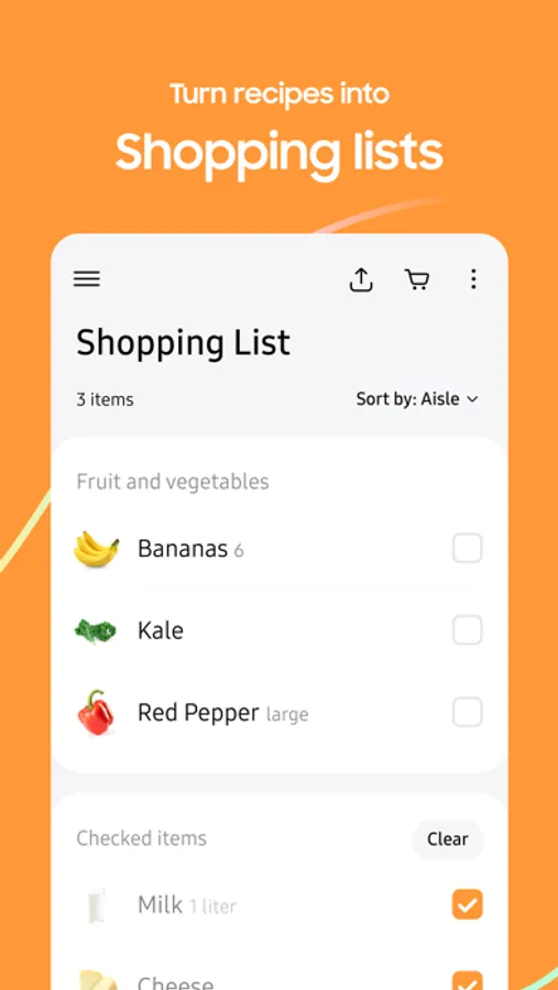 - Automatic grocery lists: Tap to make grocery lists from the recipes you want to cook. Easily add or remove items and organize your list by aisle for speedy shopping. Or create a shared shopping list with everybody in your house.