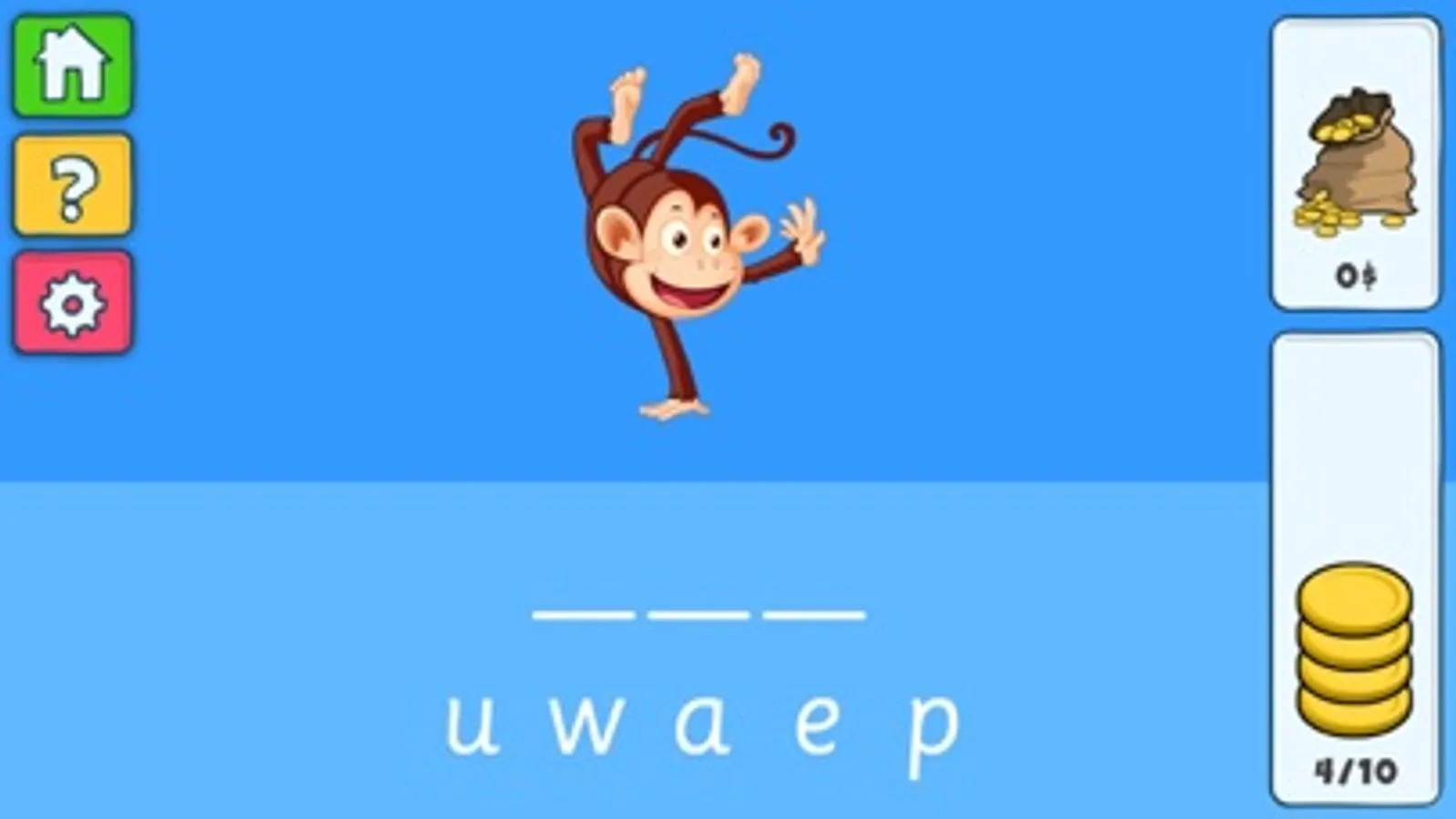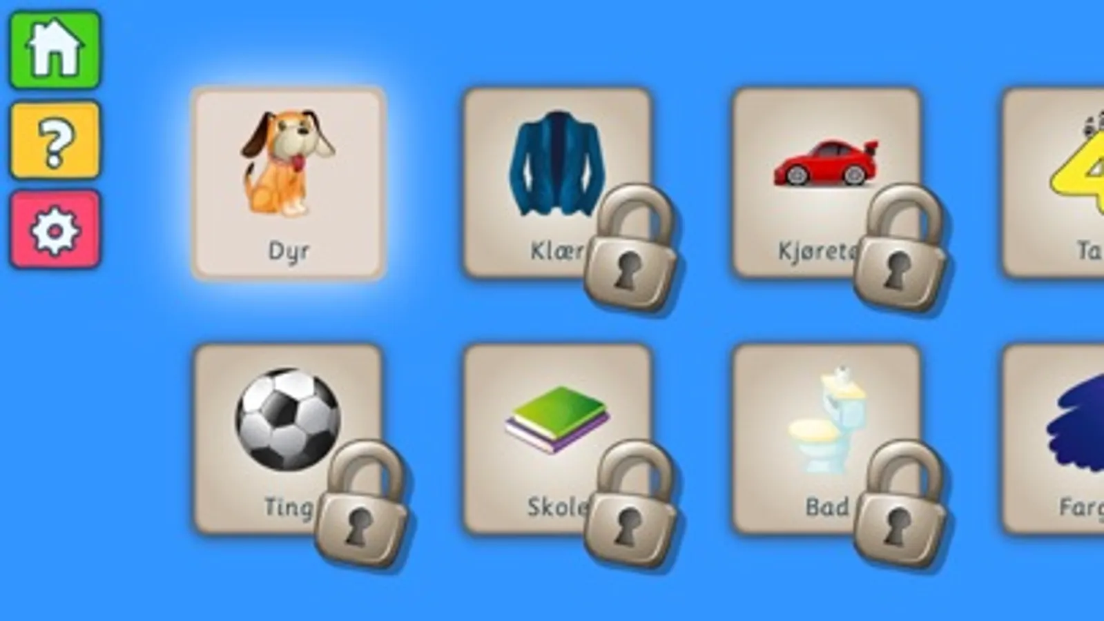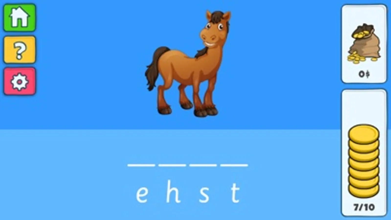 Ved å trykke på figuren, får man høre ordet som skal staves. Man kan også høre bokstavlydene ved å trykke på hver enkel bokstav. Dra så bokstavene i riktig rekkefølge til de tomme linjene under figuren for å stave ordet.