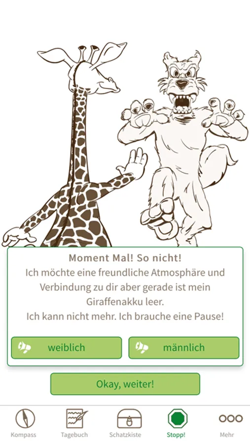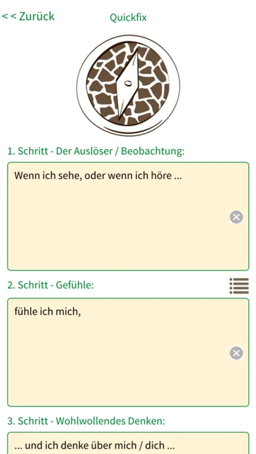 Die App für eine selbstbewusste Kommunikation in der Partnerschaft. In dieser App findest du angeleitete Meditationen, Bedürfnis- und Gefühlslisten, den Giraffen-Kompass mit der 5-Schritte-Technik, einem Notfall-Knopf, sowie ein Tagebuch.