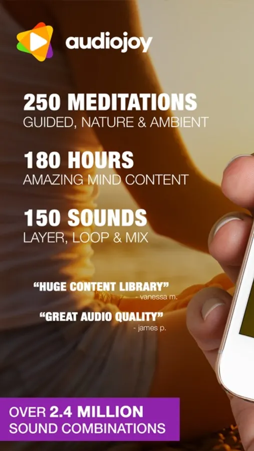GET ON TRACK: Audiojoy makes it virtually effortless to stay disciplined in your meditation practice and explore your vast and limitless Self with a library of meditation music, binaural beats, and guided meditations.