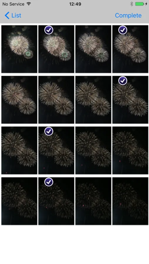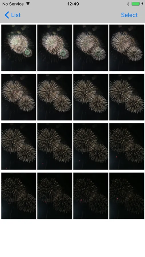 (4) Choose images of fireworks to composite among the images of consecutive shots.