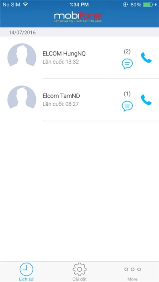 - Tra cứu lịch sử gọi nhỡ trên ứng dụng