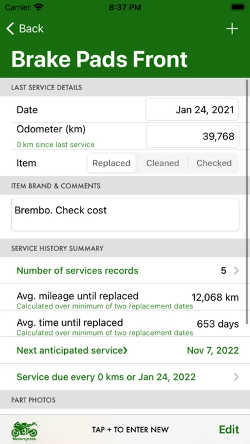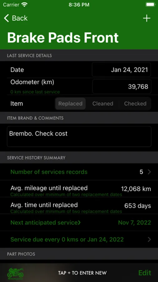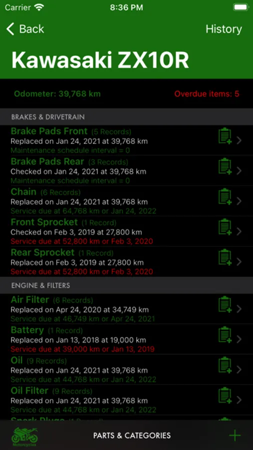 Multiple motorcycles can be added and tracked, schedule reminders and keep track of all your service records in one place and have data synced across all your iOS devices.