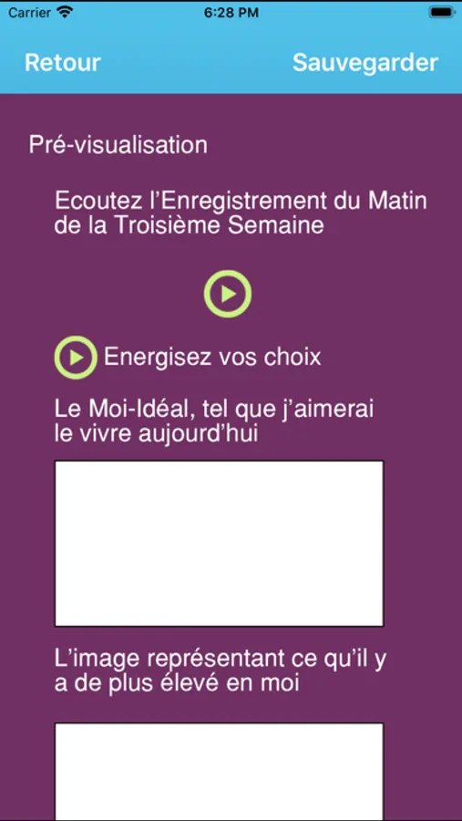 L'agenda et les exercices audio quotidiens inclus dans l'application VVV sont nécessaires pour suivre le cours Live Your Vision.