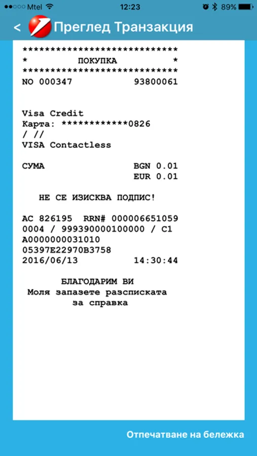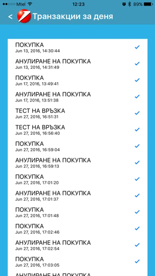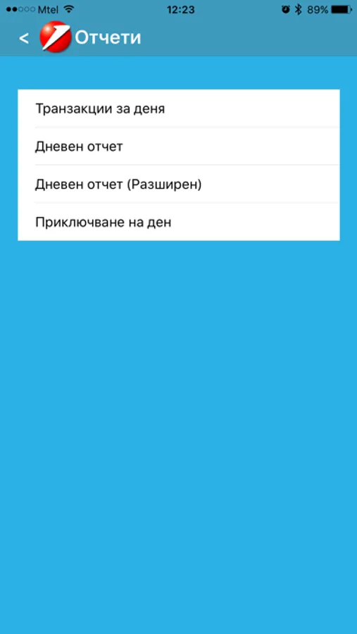 Приложението комуникира с терминала през Bluetooth и е изключително лесно за използване. Всичко, което трябва да направите е да изберете финансовата операция, която искате да извършите и след това да въведете необходимата сума. Поддържат се следните финансови операции и отчети:
