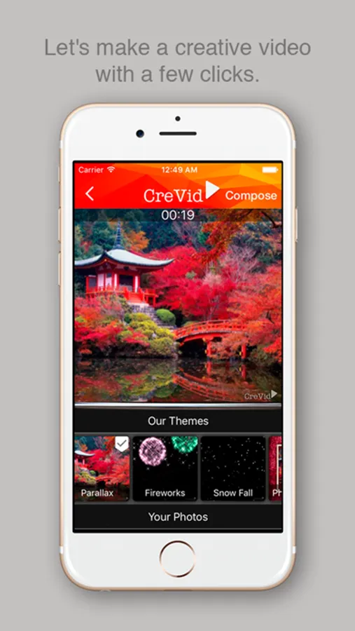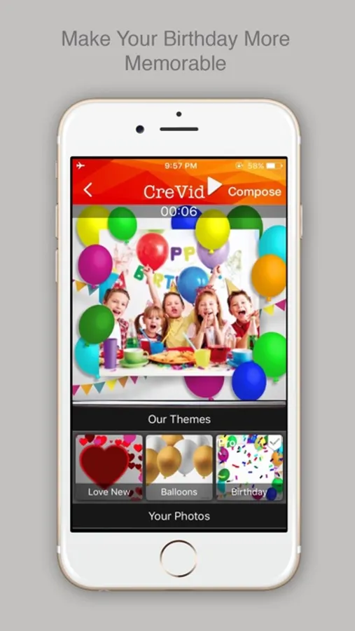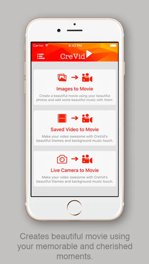 CreVid helps you to create movies or slideshows from photos, videos and live camera with animations and background music.