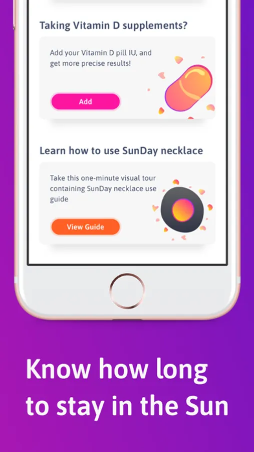 In addition to helping prevent skin damage, SunDay will display how much vitamin D IU you receive during the time in direct sunlight.