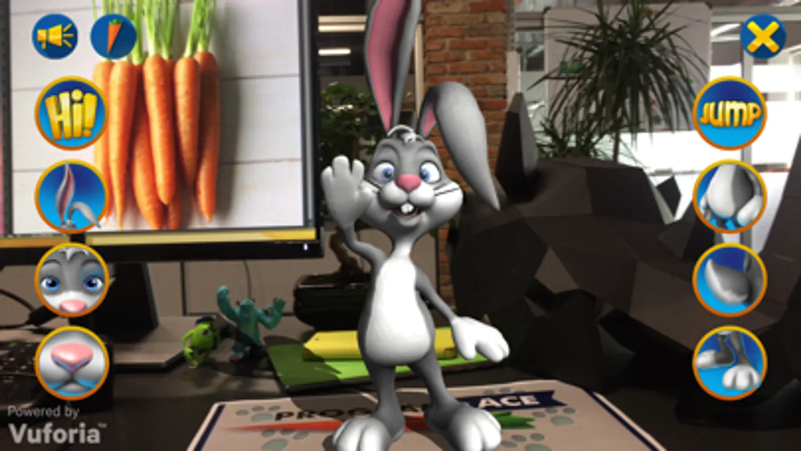 In order to appear on your screen, ARchy does not require an Internet connection, so you and your kids can enjoy the cute rabbit from all corners of the world! Just hover your device camera over a special marker that is printed or displayed on a screen of any size and he will immediately pop up to say hello to you.