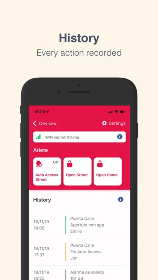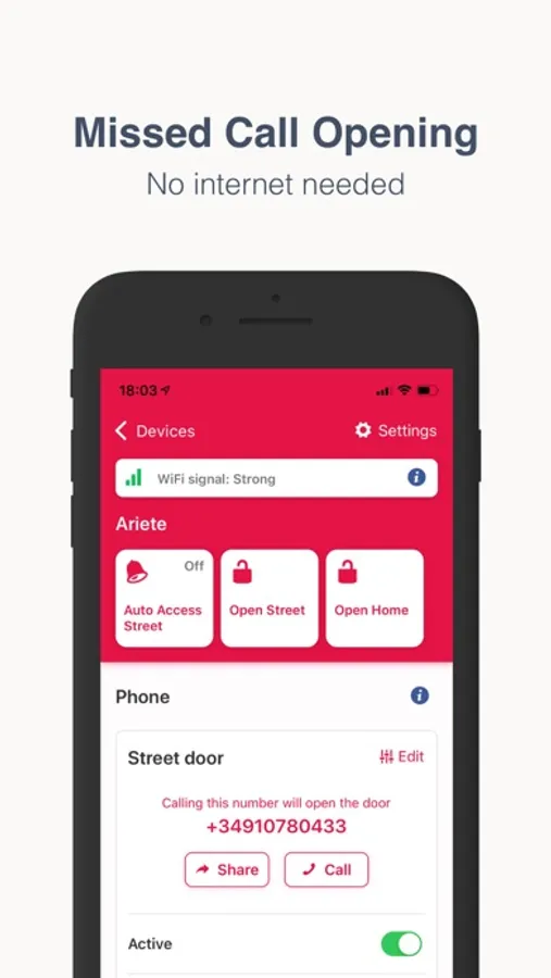 – Missed call opening: Authorize your guests' phone numbers and let them unlock the door with a missed call. Your guests don't need either the app or internet. It's the best option for the front gate or the home door.