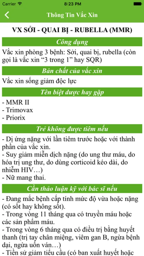 * Cung cấp thông tin về vắc xin và các lưu ý. Nhằm trả lời cho các câu hỏi như: “Bé có thể tiêm vắc xin này được không?”; “Vắc xin này có tác dụng phụ gì?”...