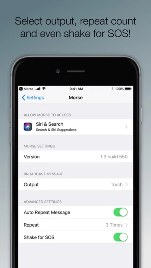 Morse! also functions in low power mode by restricting the output to the device screen and only broadcasting your message once.