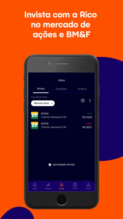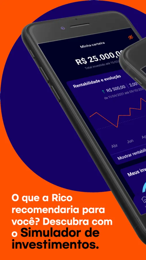 Na Rico, você diversifica seus investimentos em ações sem se preocupar com a taxa de corretagem. E encontra investimentos de renda fixa com rendimento maior que a poupança.
