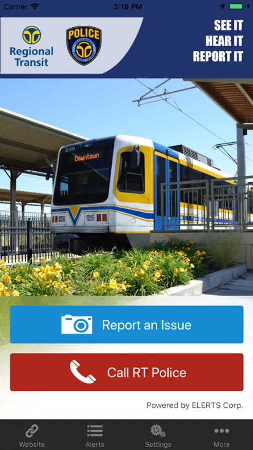 The Alert SacRT Safety and Security App offers riders a quick and discreet method for reporting safety and security concerns directly to RT Police. App users can send photos, six second video, text descriptions, and locations of suspicious people or activities. From the home screen, users have two easy options for contacting RT Police: