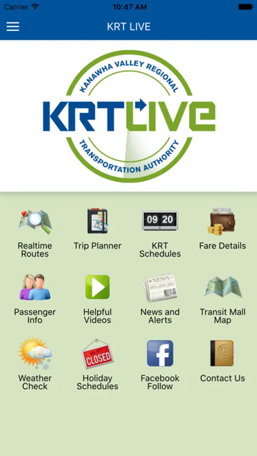Welcome to KRT LIVE ! An interactive transportation experience that provides the user real-time bus information at a glance. The enhanced "Realtime Routes" map features all bus routes on the KRT system. Select and track one or more routes at the same time.