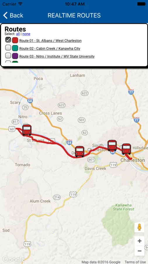 • View all bus routes on the KRT system, both as route maps and time-lapse videos.