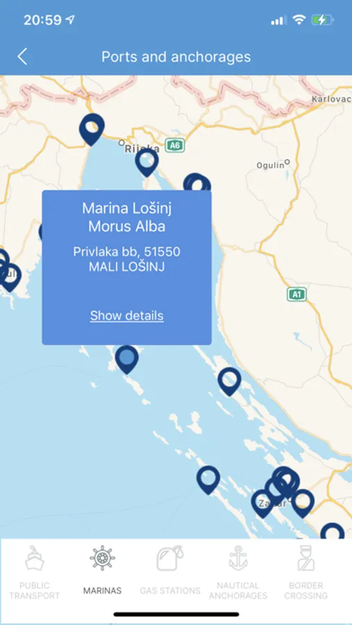 • ports and anchorages (marines, nautical anchorages, petrol stations, border crossings)