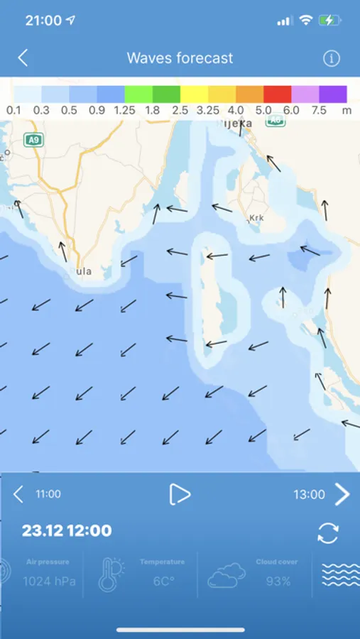 • weather forecast for mariners (air temperature, wind speed and direction, air pressure, waves, cloud cover)