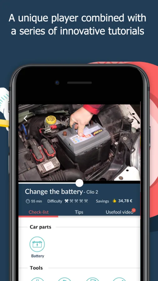 Usetool help you run the maintenance of your carthanks to SIMPLE TUTORIALS, educational and specially dedicated to your car!