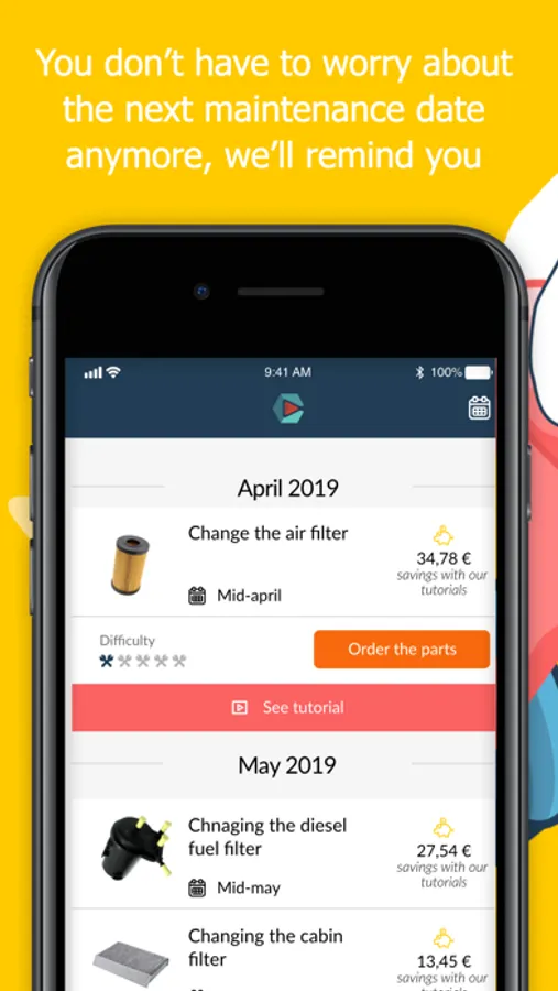 UseTool provides you with a PERSONALIZED CALENDAR that will allow you to know precisely the next maintenance operations date on your vehicle. Anticipate your parts purchases, maintain your car on time and save money.