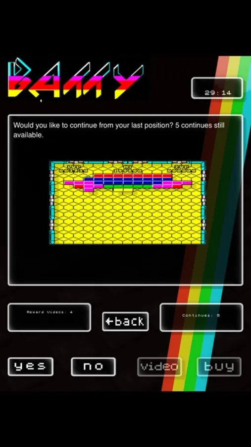 PLEASE NOTE: You may restore the game to ‘Factory Settings’ by selecting ‘No’ when asked, “Would you like to continue from your last position?” This will enable you to make an entry in the game’s local high score table. However, if after selecting ‘No’ you then select ‘Yes’ when asked “Are you sure?”, ALL your progress, cheats and in-game credits will be lost.
