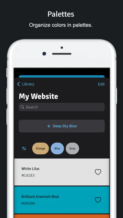 • Sort colors by recently used, name, hue, saturation, lightness.
