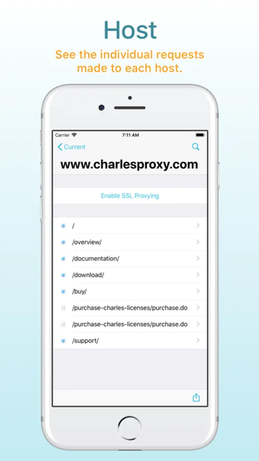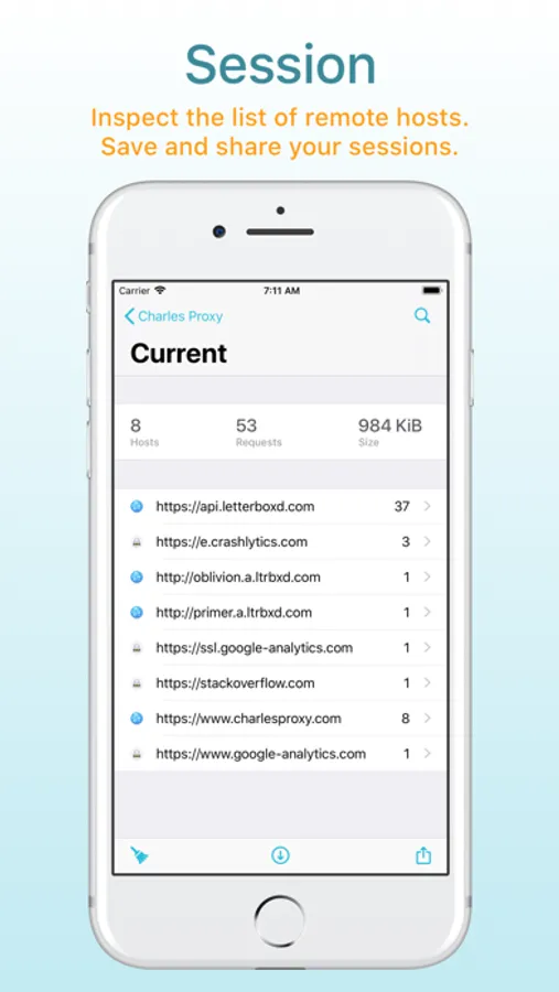 If you also have Charles on your desktop, you can transfer recorded sessions to your desktop to explore them on the big screen.