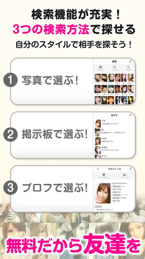 条件検索で細かく相手をサーチ!毎日多数の女性が登録してるので好みの女性もきっと見つかる!