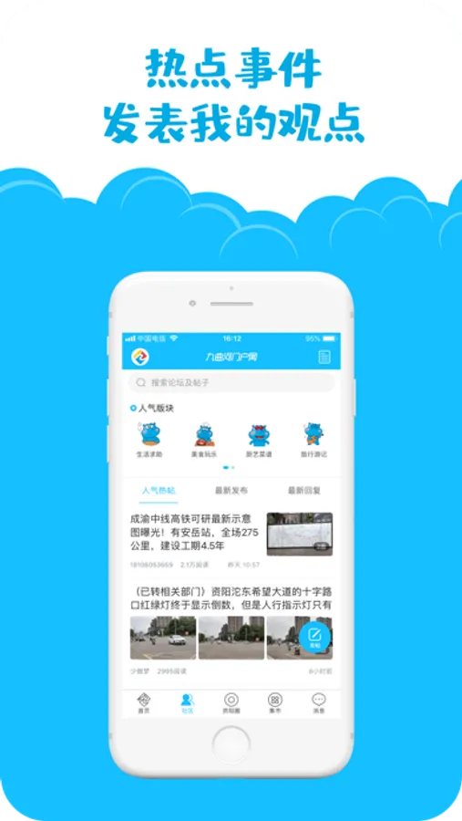 九曲河APP便捷分享和查询美食、玩乐、房产、装修、买车、结婚、生子、招聘、求职、运动等信息,总有你感兴趣的交流话题和爱好圈子,还有各类丰富的线上、线下活动!